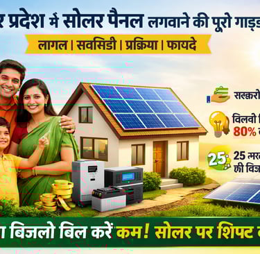 “Uttar Pradesh में सोलर पैनल लगवाने की पूरी गाइड: लागत, सब्सिडी, प्रक्रिया और फायदे। अपना बिजली बिल कम करें और आज ही सोलर पर शिफ्ट करें!”